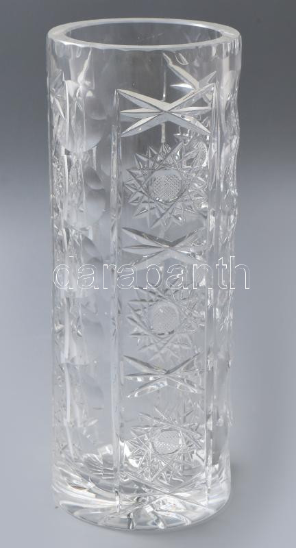 Ólomkristály váza, hámozott és csiszolt díszítéssel, kis kopással, m: ...