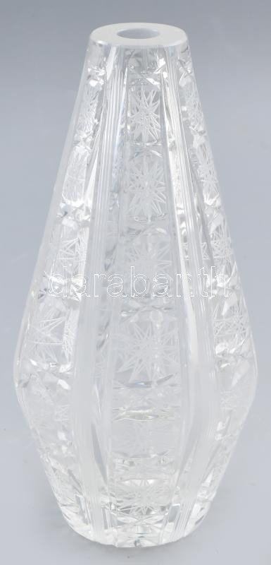 Ólomkristály váza, hámozott és csiszolt mintával, hibátlan, m: 21,5 cm
