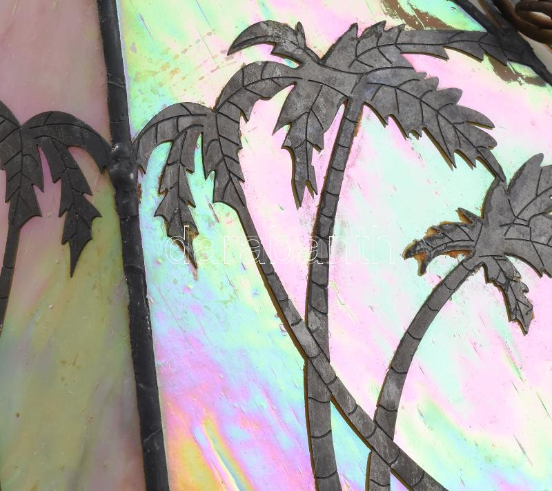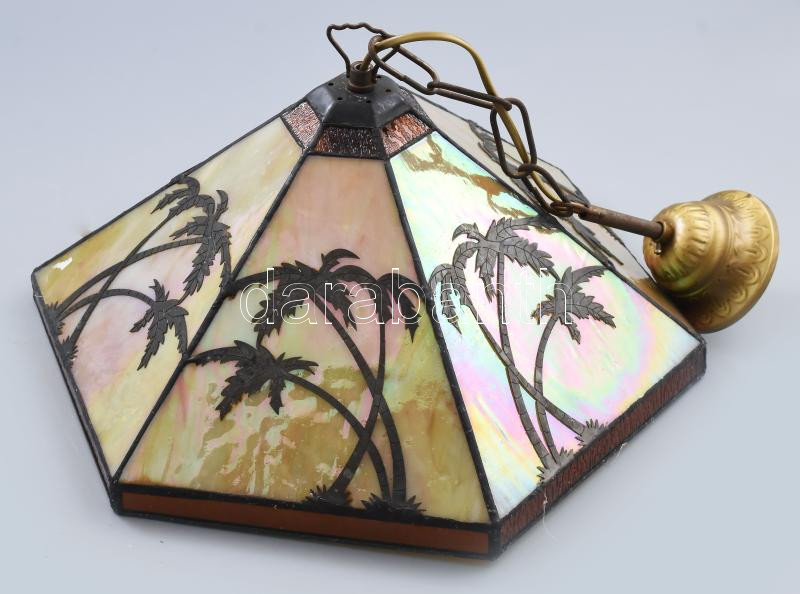 Ólomüveg mennyezeti lámpabúra, kis kopással, pálmafa mintával, d: 41 c...