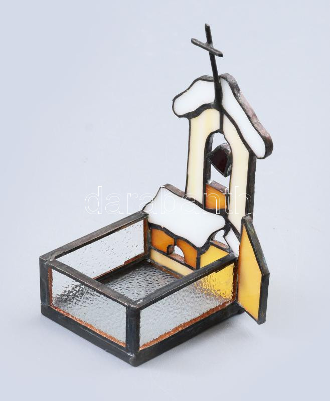 Ólomüveg templom ékszertartó, hibátlan, m: 11,5 cm