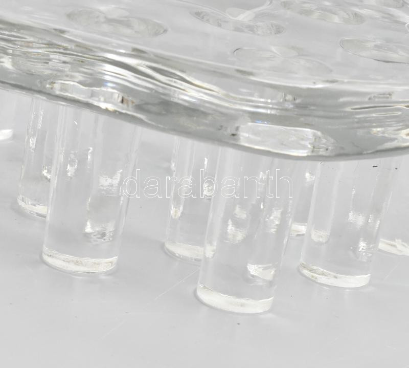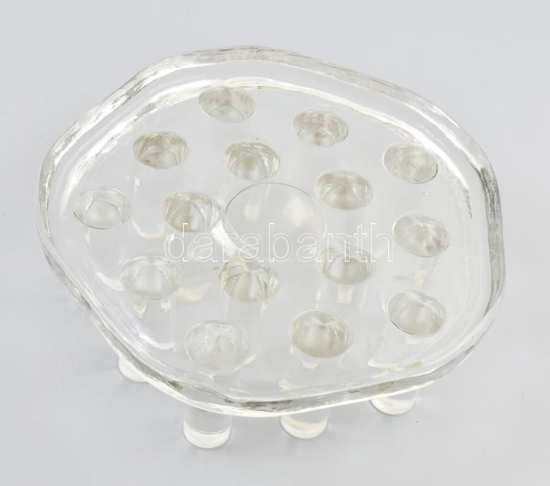 Skandináv öntött üveg asztaldísz, jelzés nélkül, vastag üveg, d: 19 cm, m: 7 cm