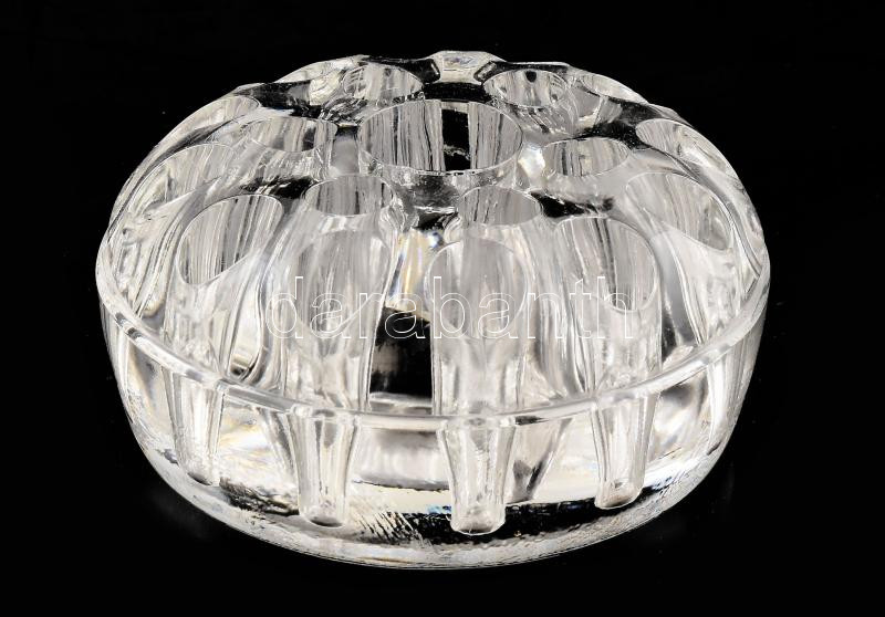 Skandináv retro öntött üveg ikebana váza, jelzés nélkül, kis kopással, d: 10 cm, m: 5,5 cm