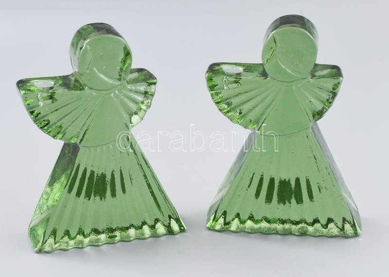Thüringiai üveg angyalka gyertyatartó pár. Thüringer Waldglas anyagában színezett öntött üveg, címkével jelzett, hibátlan, m: 12 cm