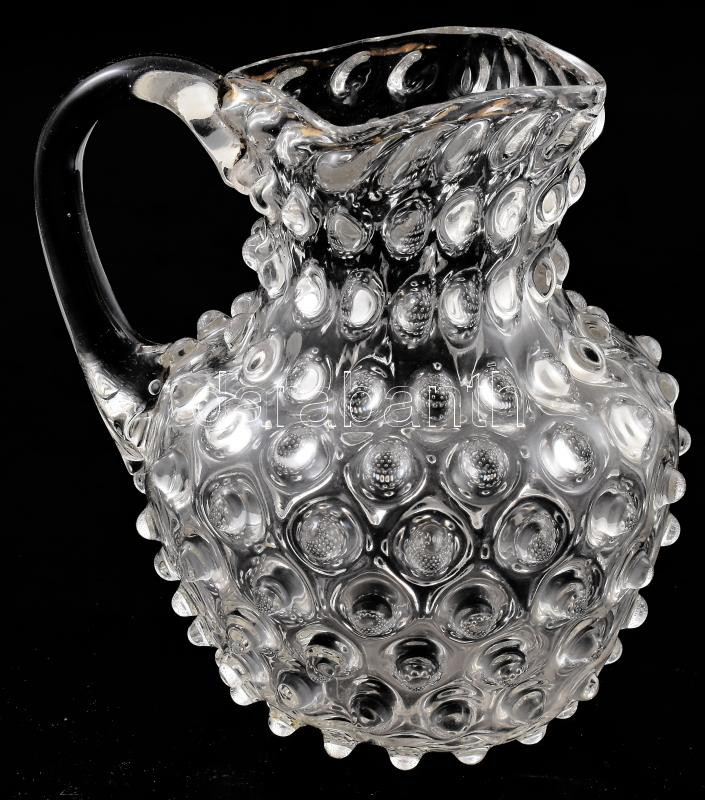 Zempléni huták, 19. sz. második fele, Bütykös kancsó. Színtelen hutaüveg, minimális kopással, m: 12 cm