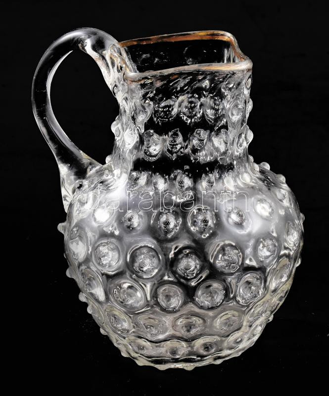 Zempléni huták, 19. sz. második fele, Bütykös kancsó. Színtelen hutaüveg, minimális kopással, m: 12 cm