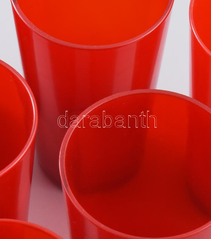 cca 1960-1980, feltehetően olasz designer, opalinos színezésű krémvörös üdítős pohár szett, 6 db, jelzés nélkül, minimális kopottsággal, m: 13 cm