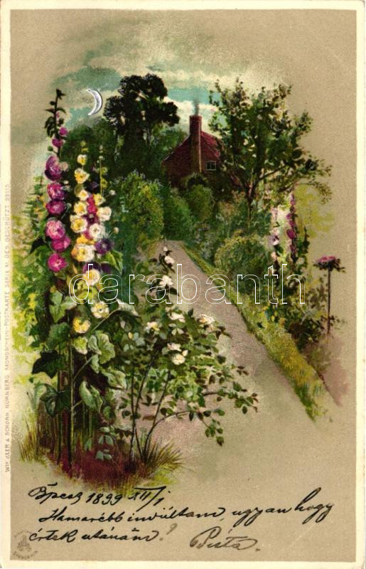 1899 Landscape with flowers, Winkler & Schorn Mondschein-Postkarte...