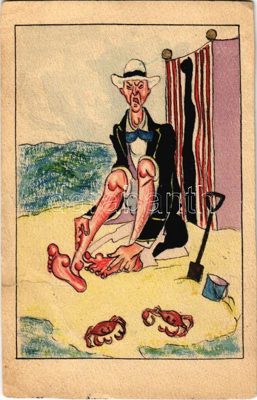 https://www.darabanth.com/en/457-Online-auction/457.0/Postcards/Art-postcards~1000040/1968-Rakcsipes-a-strandon-kezzel-rajzolt-Crab-bites-on-the-beach-hand-drawn-s-Foldes-Imr~II3060287