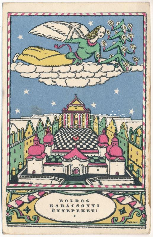 Boldog Karácsonyi Ünnepeket! Nyomtatta és kiadja Knerr Izidor, Gyoma / Hungarian Christmas art postcard s: Kozma (fl)