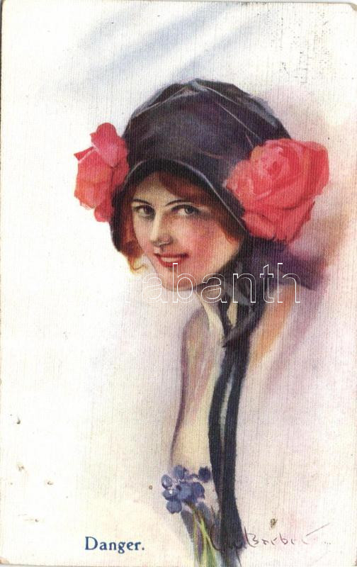Danger / Lady with hat, The Carlton Co. Series No. 659. s: C.W. Barber (pinholes)