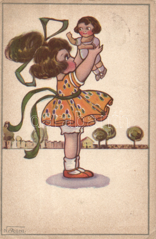 Italian art postcard, Girl with a doll, Anna & Gasparini 517-1. s: N. Azzoni (small tear)