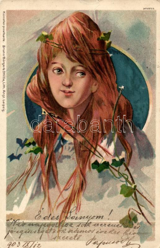 Red hair girl, Bruno Bürger & Ottillie No. 2255. litho (b)