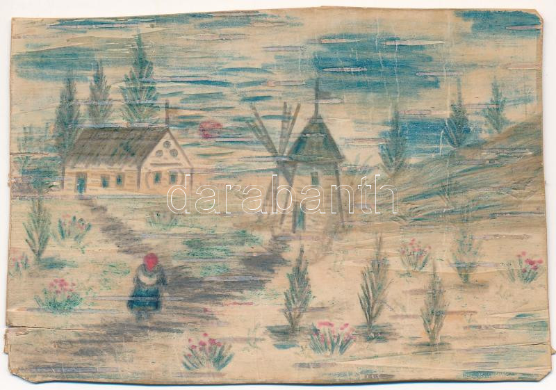 https://www.darabanth.com/en/457-Online-auction/457.0/Postcards/Art-postcards~1000040/Sajat-kezzel-rajzolt-muveszlap-szelmalommal-fakeregbol-Hand-drawn-wooden-art-postcard-with-~II3057254