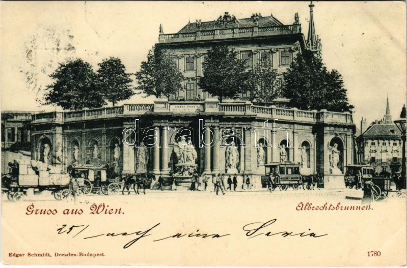 https://www.darabanth.com/en/457-Online-auction/457.0/Postcards/Austria~1000062/1899-Vorlaufer-Wien-Vienna-Becs-Albrechtsbrunnen-fountain-horse-drawn-carriages-omnibus-~II3060696