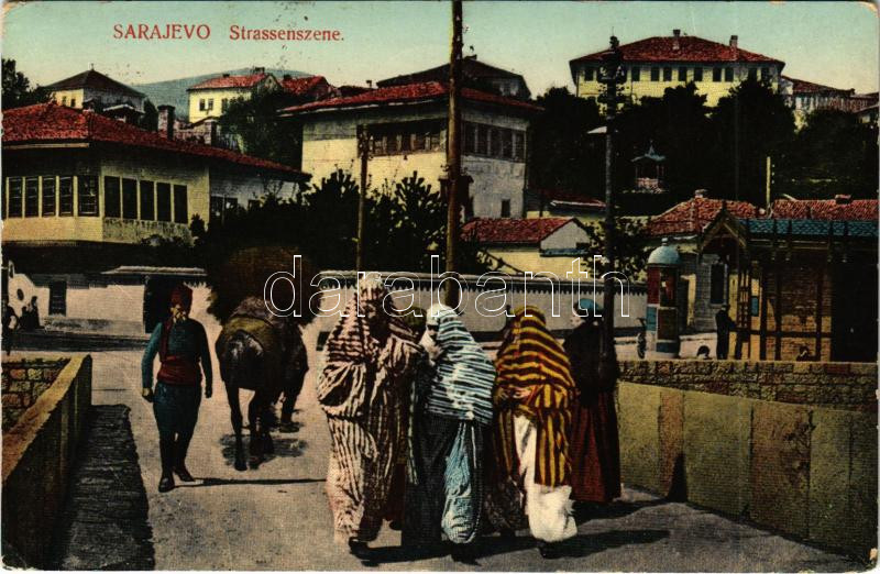 1909 Sarajevo, Strassenszene / street, Bosnian folklore (Rb)