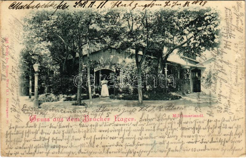 1900 Királyhida, Bruckújfalu Tábor, Brucker Lager, Bruckneudorf; Milchmariandl / tejcsarnok és kávéház / milk hall and café (EK)