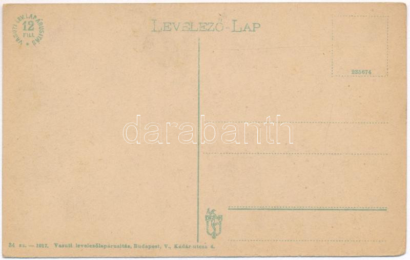 Description: Eszék, Essegg, Osijek; Zeljeznicki dravski most / Bahnbrücke an der Drau / Dráva híd, vasúti híd, vonat. Vasúti Levelezőlapárúsítás 34 sz. -1917 / railway bridge, train (kopottélek / worn edges)