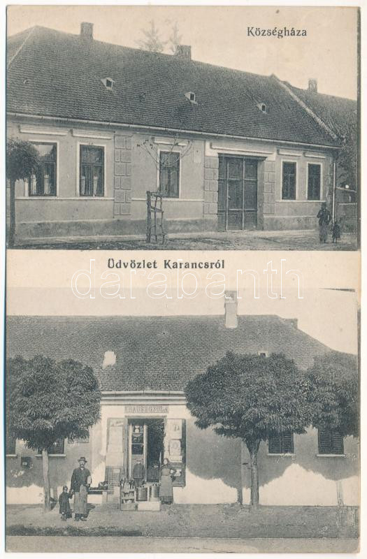 Karancs, Karanac; Községháza, Krausz Gyula üzlete / town hall, shop of...