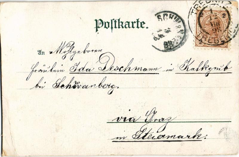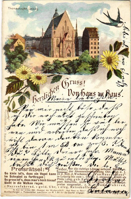 1898 (Vorläufer) Leipzig, Thomaskirche. Postkarte "Von Haus zu Haus" No. 15. Floral (cut)