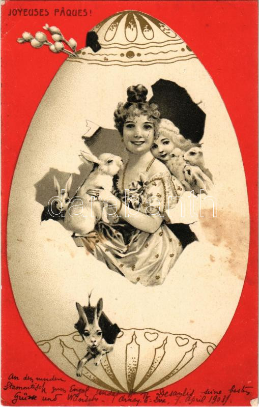 1903 Joyeuses Paques! / Húsvéti üdvözlet tojással / Easter greeting, e...