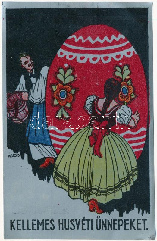 1925 Kellemes Húsvéti Ünnepeket! Egyedi fémlemez üdvözlőlap / Easter greeting - Hungarian custom made metal plate card s: Ágoston
