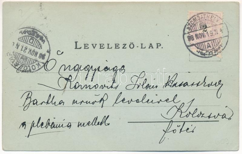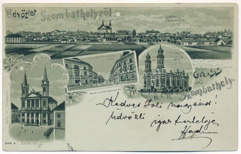 1898 (Vorläufer) Szombathely, látkép, Székesegyház, Széll Kálmán utca, zsinagóga. Art Nouveau, floral, litho (EK)