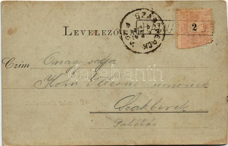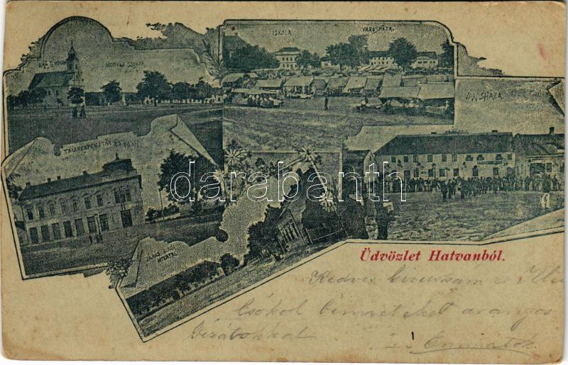1899 (Vorläufer) Hatvan, Római katolikus templom, Honvéd szobor, iskola, városháza, piac, takarékpénztár és posta, Járásbírói hivatal. Art Nouveau, floral (vágott / cut)