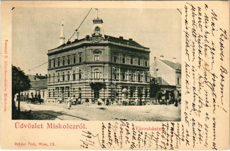 https://www.darabanth.com/en/457-Online-auction/457.0/Postcards/Hungary~1000005/1899-Vorlaufer-Miskolc-Varoshaz-ter-piac-Ferenczi-B-kiadasa-EK~II3057158