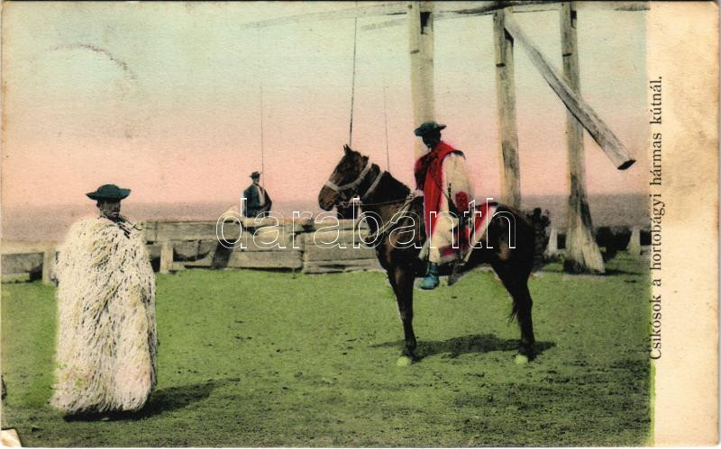 1905 Hortobágy, csikósok a hármas kútnál (fl)
