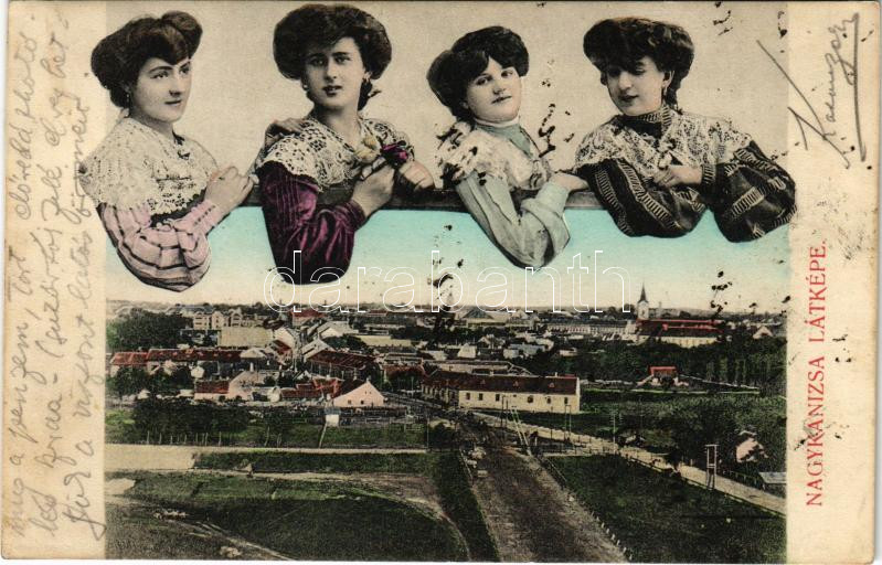 1908 Nagykanizsa, montázs négy hölggyel. Fischel Fülöp fia kiadása (fl...