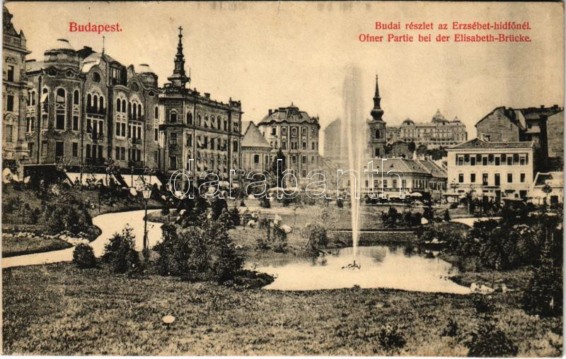 1910 Budapest I. Budai részlet az Erzsébet hídfőnél, Tabán, Keller Ign...