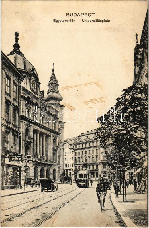 https://www.darabanth.com/en/457-Online-auction/457.0/Postcards/Hungary~1000005/1915-Budapest-V-Egyetem-ter-villamos-Blazek-Adolf-Szabo-Vilmos-uzlete-kerekparos-azott-s~II3053563