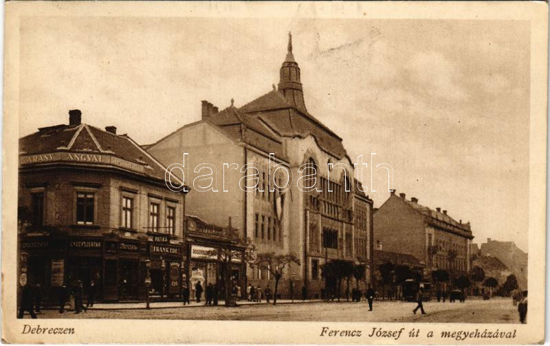 https://www.darabanth.com/en/457-Online-auction/457.0/Postcards/Hungary~1000005/1928-Debrecen-Ferenc-Jozsef-ut-megyehaza-Arany-Angyal-gyogyszertar-Frank-Ede-es-Rosenberg-~II3053022