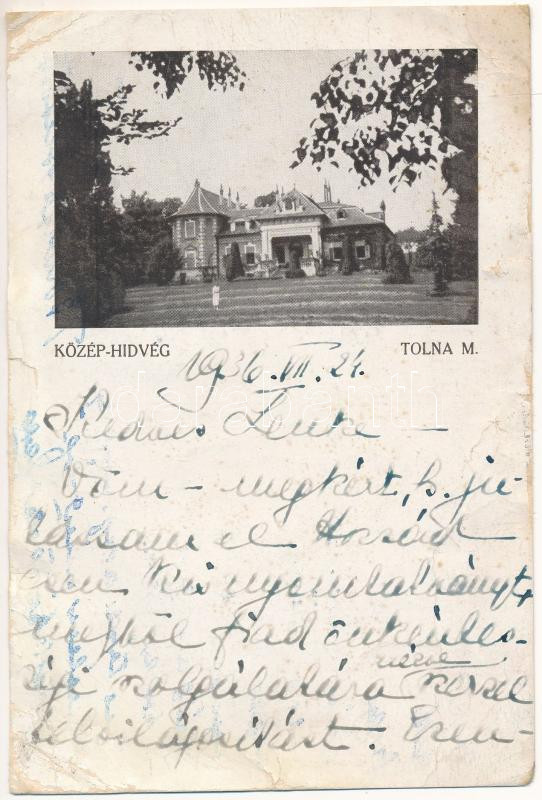 1936 Középhídvég, Közép-Hídvég (Tengelic); Bernrieder kastély. Hátoldalon Bernrieder Elly levele és aláírása (szakadások / tears)