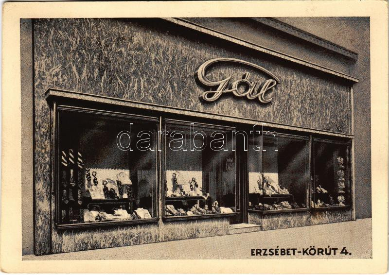 1938 Budapest VII. Gál üzlet kirakata. Erzsébet körút 4. + "VIII....