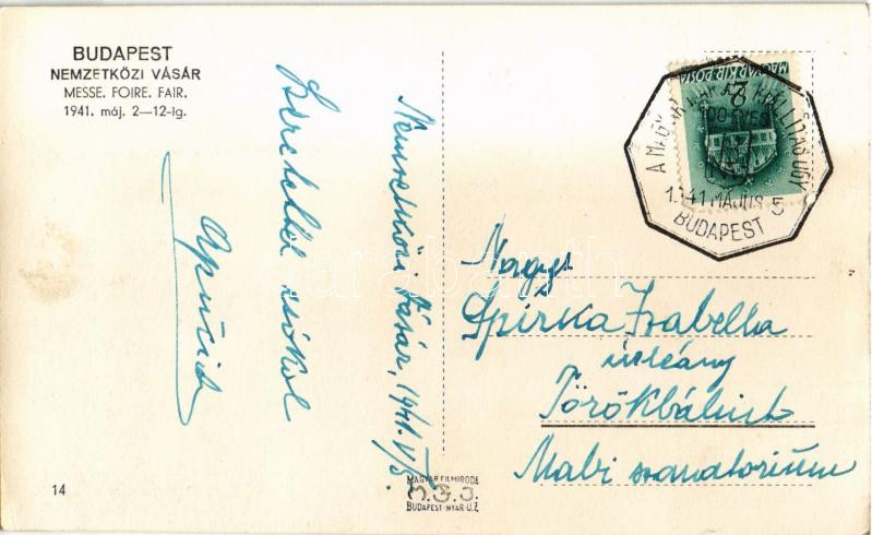 1941 Budapest, Nemzetközi Vásár, Tungsram Orion pavilon + So. Stpl. (EK)