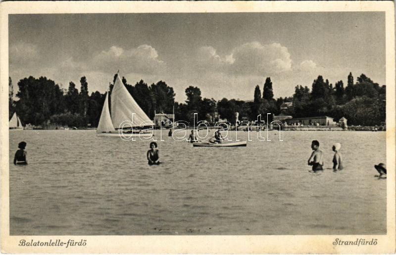 1947 Balatonlelle, Strandfürdő, fürdőzők (fl)