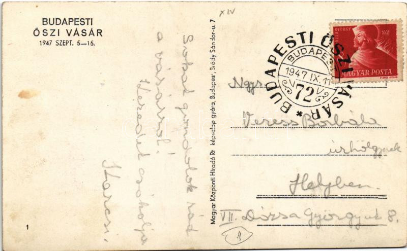 https://www.darabanth.com/en/457-Online-auction/457.0/Postcards/Hungary~1000005/1947-Budapest-XIV-Oszi-Vasar-Dohanyjovedek-plus-So-Stpl-fl~II3060578