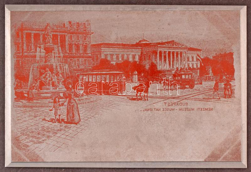 Budapest VIII. Ezredéves Országos Kiállítás, Nemzeti Múzeum és Kálvin tér, villamos. barna 2 Kr. Ga. s: Dörre T., Morelli - másolat alumínium lemezen