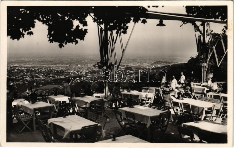 Budapest XII. Jánoshegy, kilátás, vendéglő terasza pincérekkel