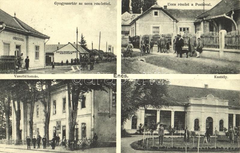 Encs, Forró-Encs vasútállomás, gyógyszertár és utca, kastély, posta, R...