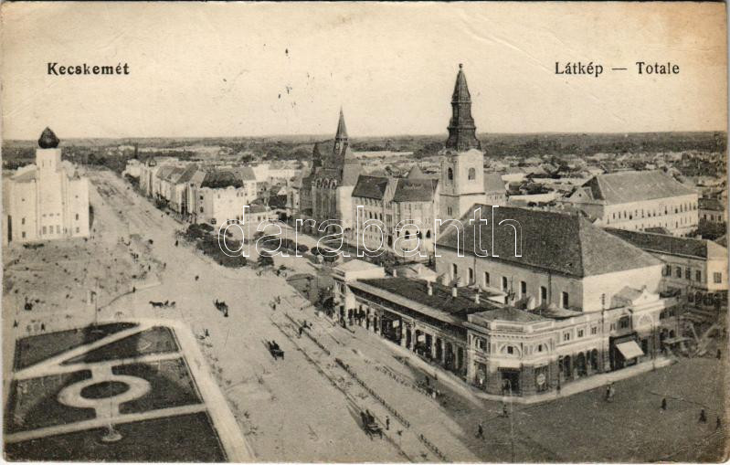 Kecskemét, látkép, zsinagóga, városháza. Fekete Soma kiadása (Rb)