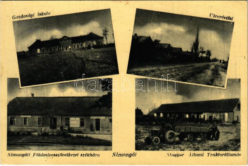 Simongát (Nagyatád), Gazdasági iskola, utca, Földmívesszövetkezet székháza, magyar Állami Traktorállomás (EK)