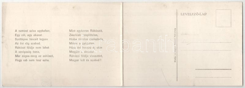 Felvidéki riadó! Rákóczi Ferenc induló kottával. 2-részes irredenta ki... https://www.darabanth.com/en/457-Online-auction/457.0/Postcards/Irredenta~1000030/Felvideki-riado-Rakoczi-Ferenc-indulo-kottaval-2-reszes-irredenta-kihajthato-kepeslap-Ma~II3058203
