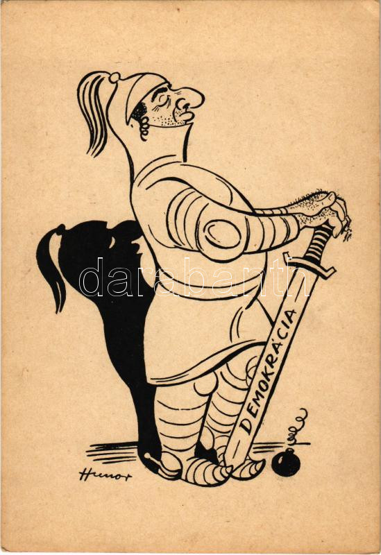 Demokrácia. Magyar gúnyos antiszemita művészlap. Judaika / Democracy. Hungarian mocking anti-Semitic art postcard, Judaica s: Hunor (EK)