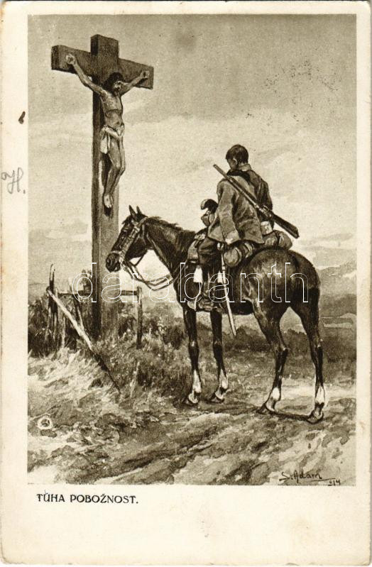 1914 Tuha Poboznost / WWI Austro-Hungarian K.u.K. military art postcard, soldier praying. G. G. W. II. Nr. 9/1914. s: S. Adam (EK)