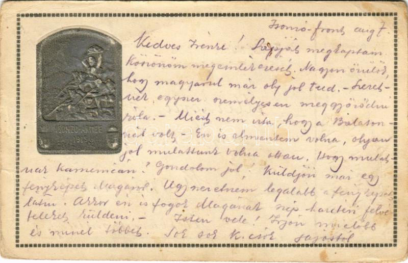 1916 Isonzo-Armee 1915 feliratú jelvény képe tábori levelezőlapon / WW... https://www.darabanth.com/en/457-Online-auction/457.0/Postcards/Militaria~1000032/1916-Isonzo-Armee-1915-feliratu-jelveny-kepe-tabori-levelezolapon-WWI-Austro-Hungarian-KuK~II3058253