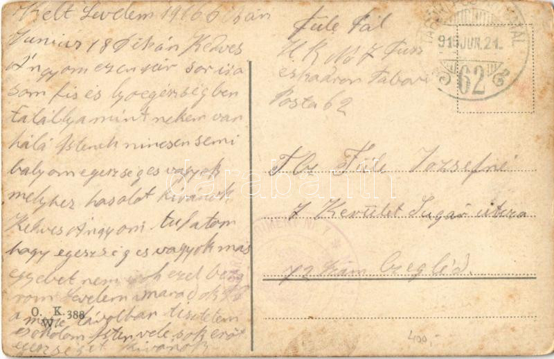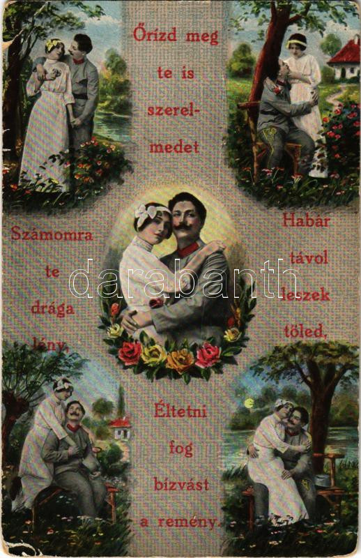 Description: 1916 Őrizd meg te is szerelmedet... Osztrák-magyar romantikus katonai képeslap / WWI Austro-Hungarian K.u.k. romantic military + "TÁBORI POSTAHIVATAL 62" (fa)