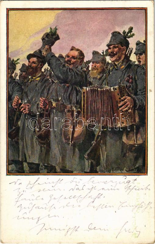 Description: 1917 Offizielle Karte für Rotes Kreuz, Kiregsfürsorgeamt Kriegshilfsbüro Nr. 110. / WWI Austro-Hungarian K.u.K. military art postcard s: Marussig + "K.u.K. Polizeiamt in Schkodra-Passamt" (EK)