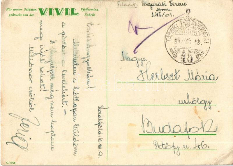 1942 Magyar tábori posta német levelezőlapon / WWII German military fi...